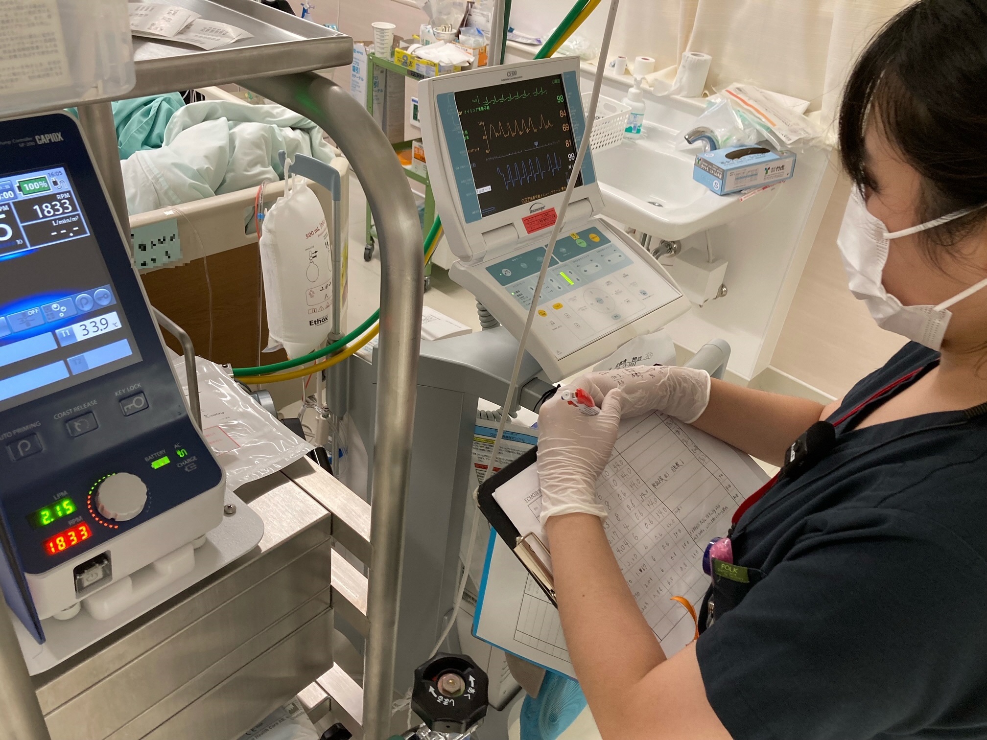 生命維持管理装置を使用して治療を受けている患者さんの多くは重症であり、中には生命の危機にあります。我々臨床工学技士は医療機器操作や患者さんの病態評価に関する技術、知識のみならず、患者さんやご家族の立場にたった全人的医療を提供いたします。